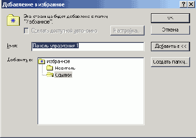 Рисунок 4.15. Диалоговое окно для добавления страниц в папку Избранное