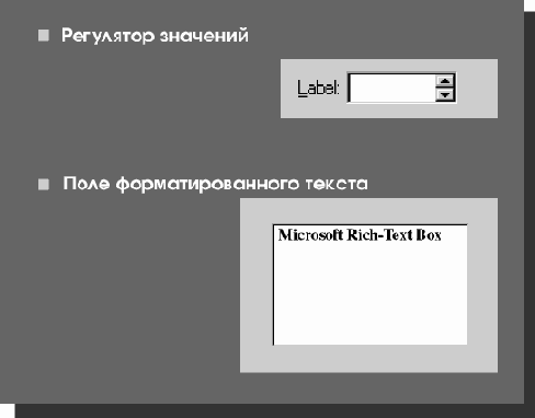 Существуют два текстовых элемента управления: регулятор значений и поле форматированного текста (рис. 12.7).