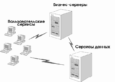 Чтобы добиться максимальной распределенности сервисов, модель «Приложение» подразделяет их натри категории: пользовательские, бизнес-сервисы и сервисы данных (рис. 13.3).